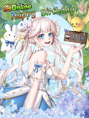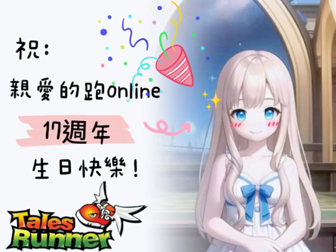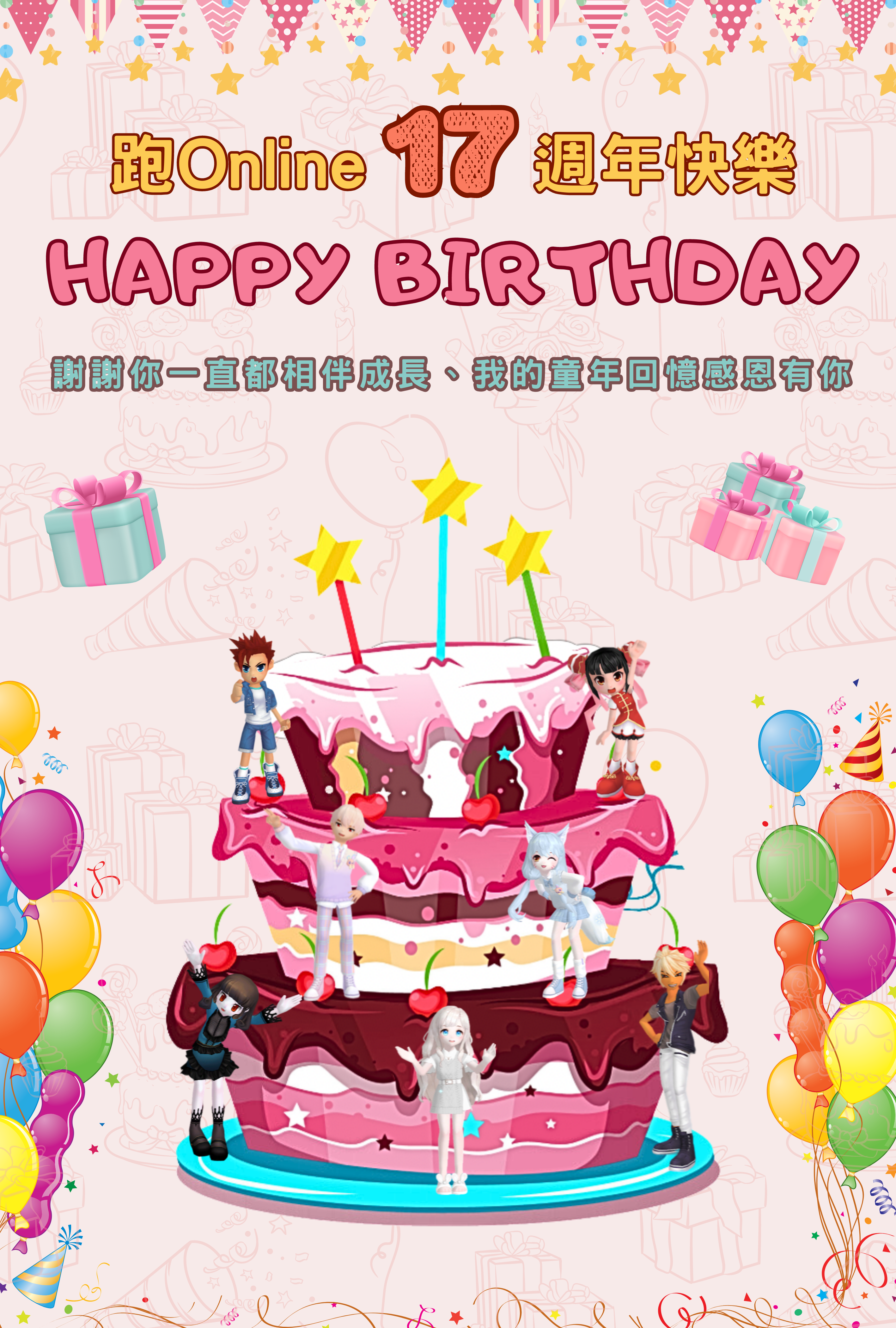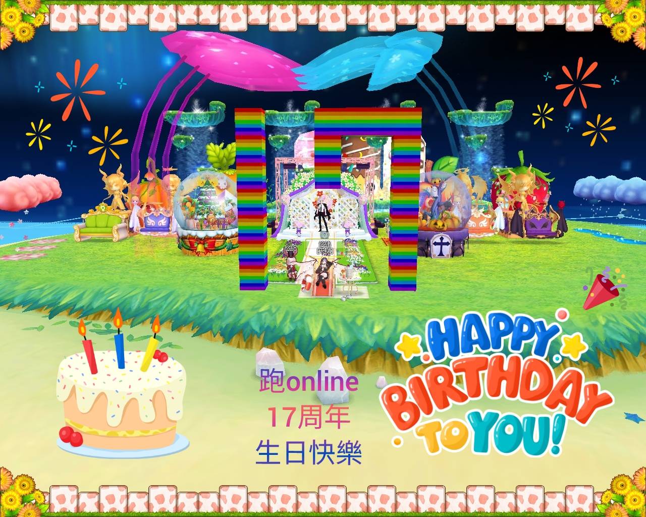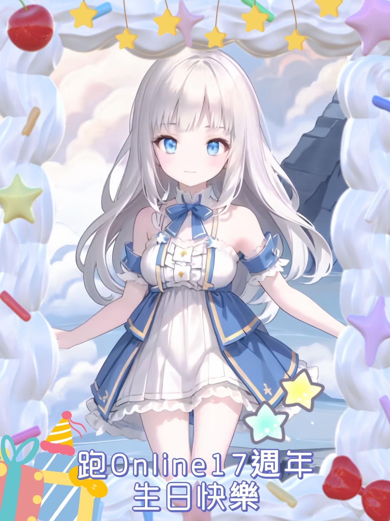 祝跑Online17週年生日快樂,願跑者之間關係和和樂樂,友誼長存。(希望獲得「童話生日慶生禮」白夜星芒披風-D)