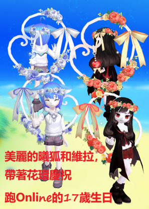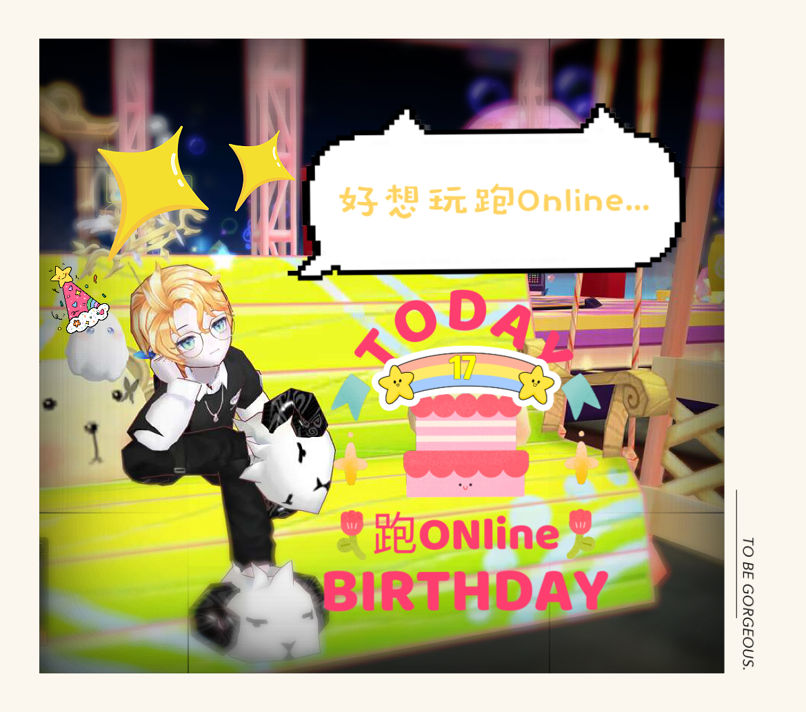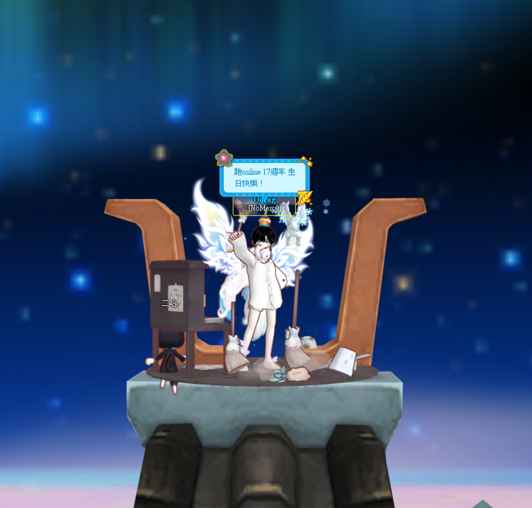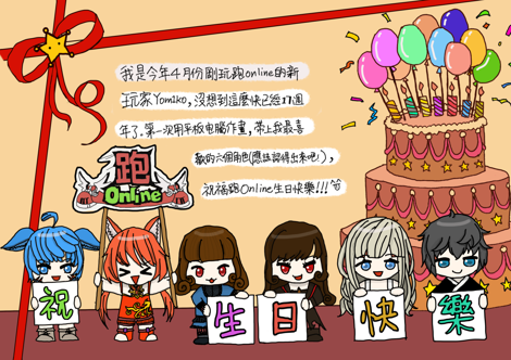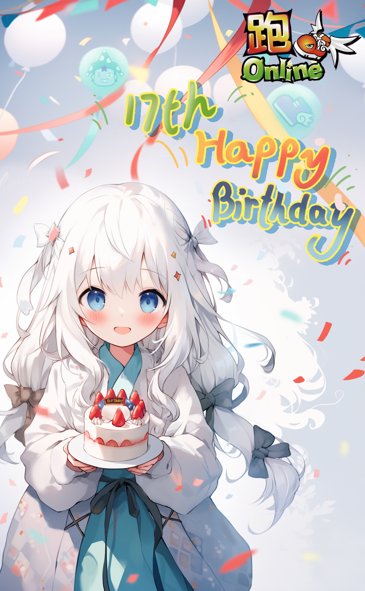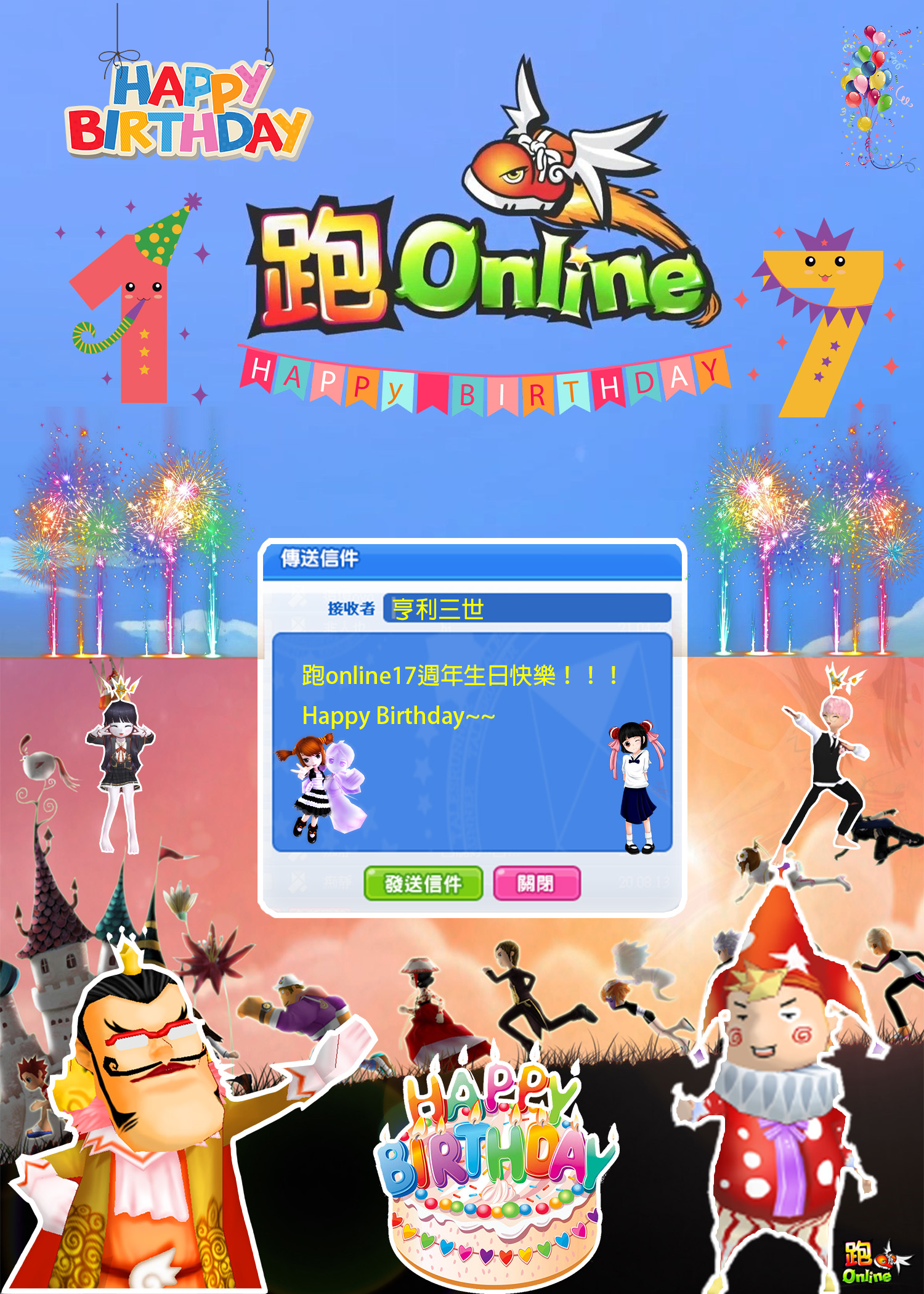 祝跑Online17週年生日快樂,願跑者之間關係和和樂樂,友誼長存。(希望獲得「童話生日慶生禮」白夜星芒披風-D)