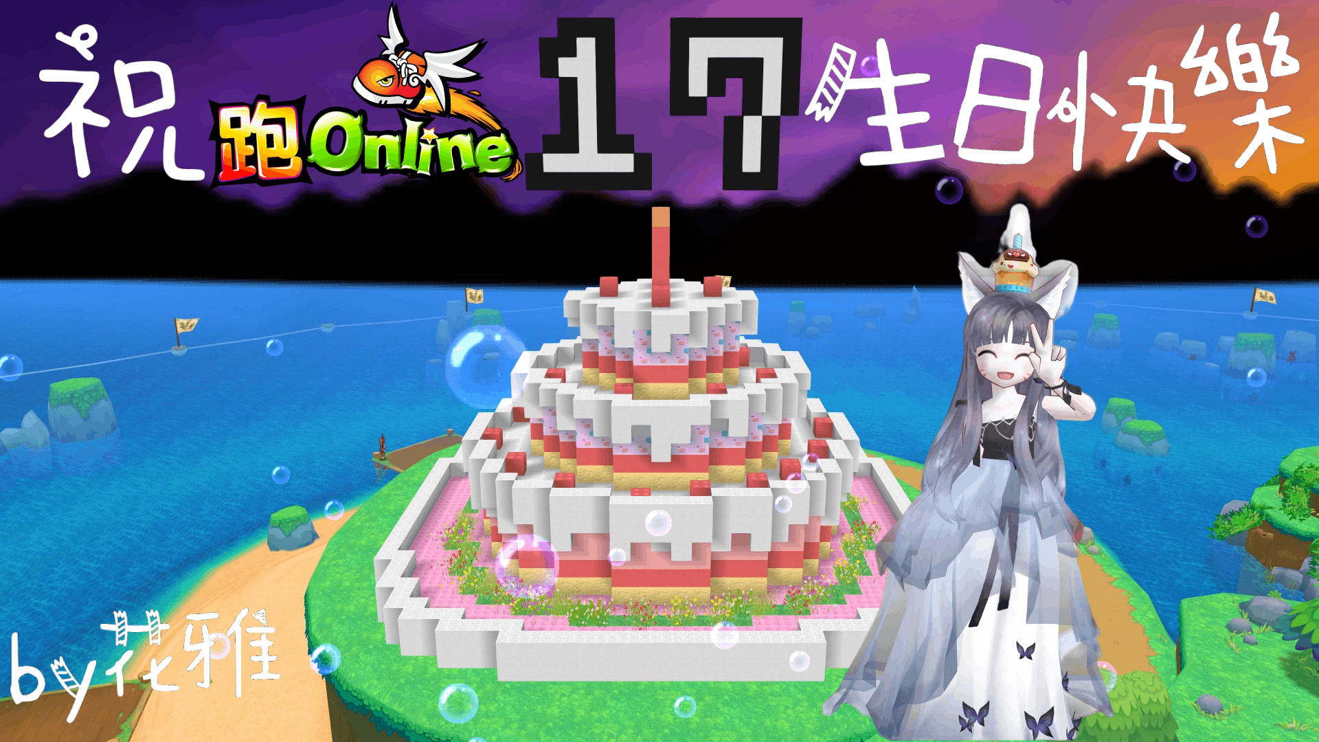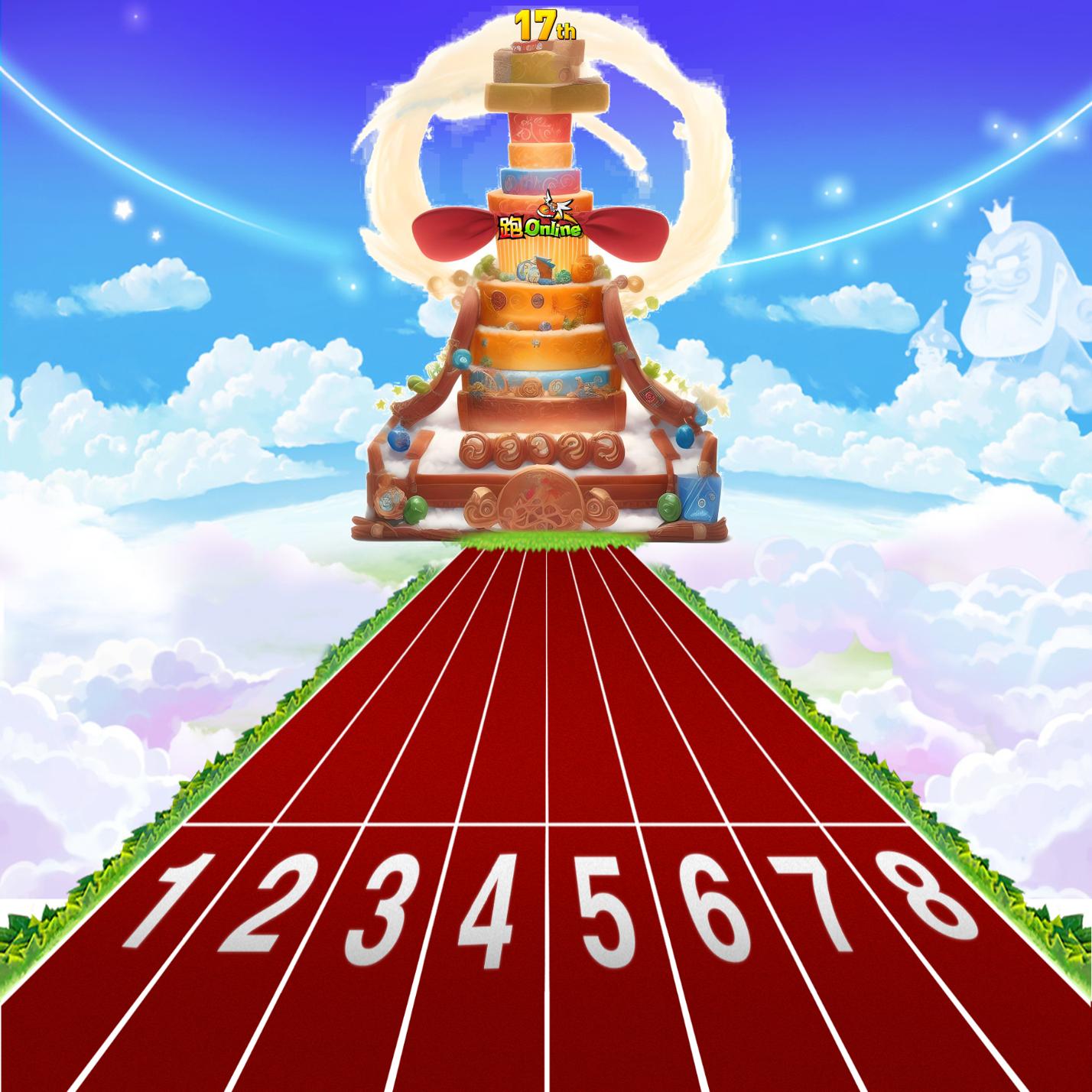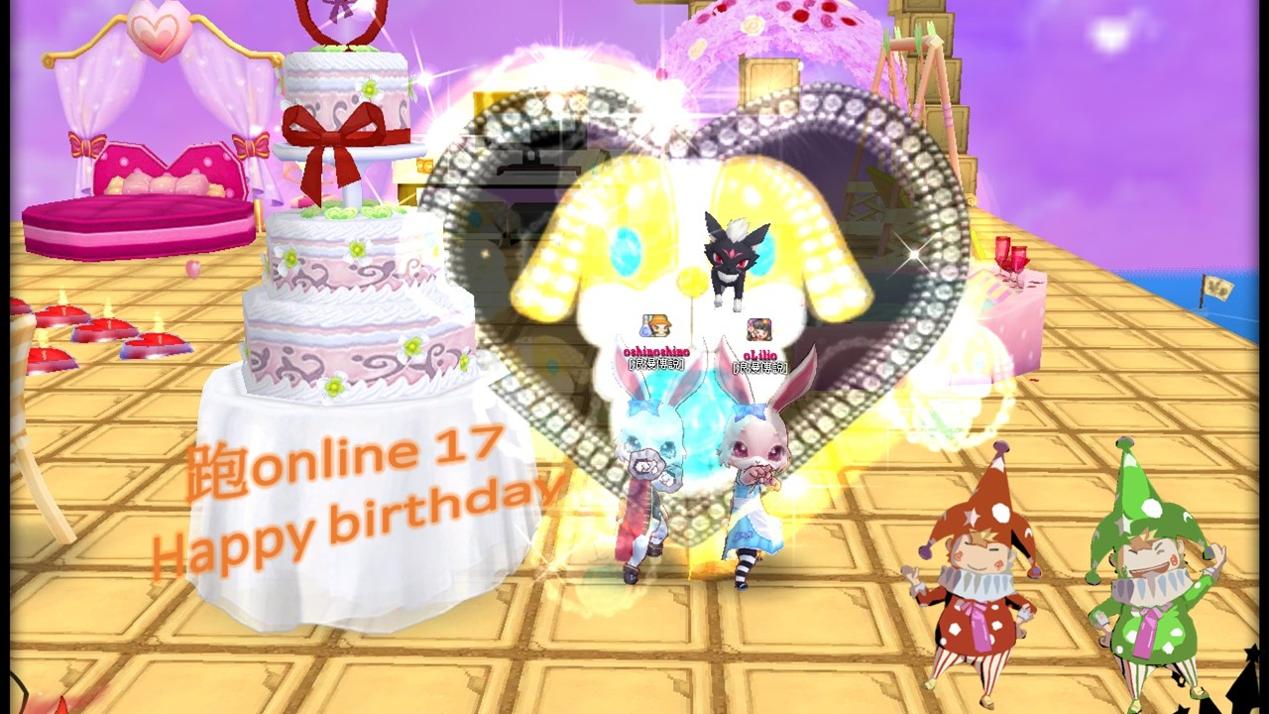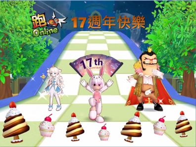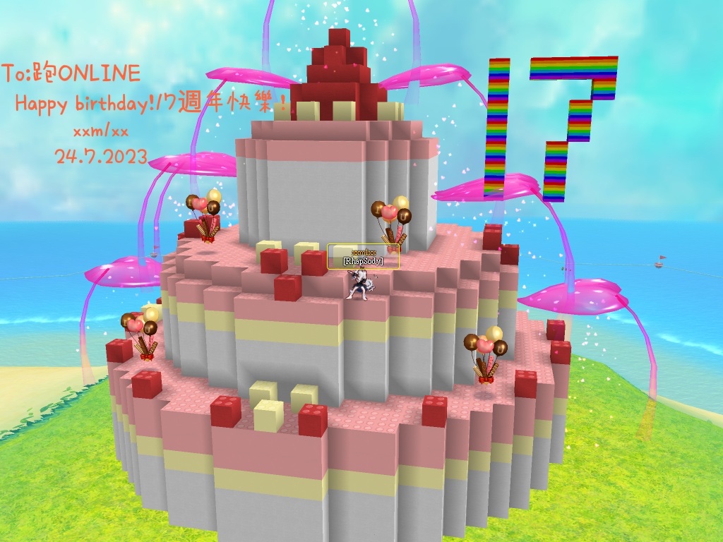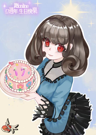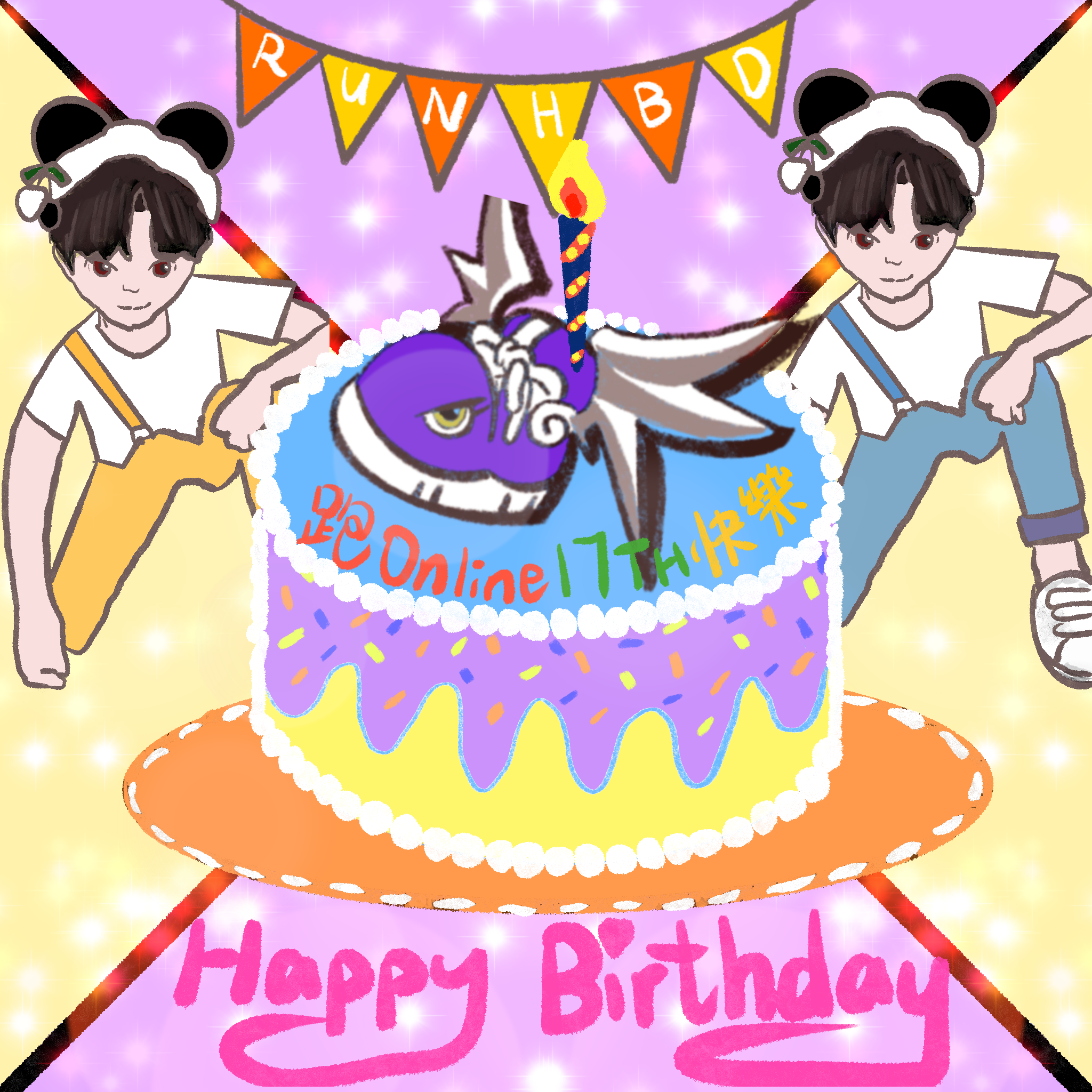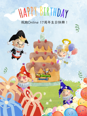 夏日將至,亦代表跑online的十七週年即將來臨 蛋糕上的繽紛色彩如同童話王國,令人回憶起在跑online中種種趣事。獎品要華麗的對決翅膀-D
