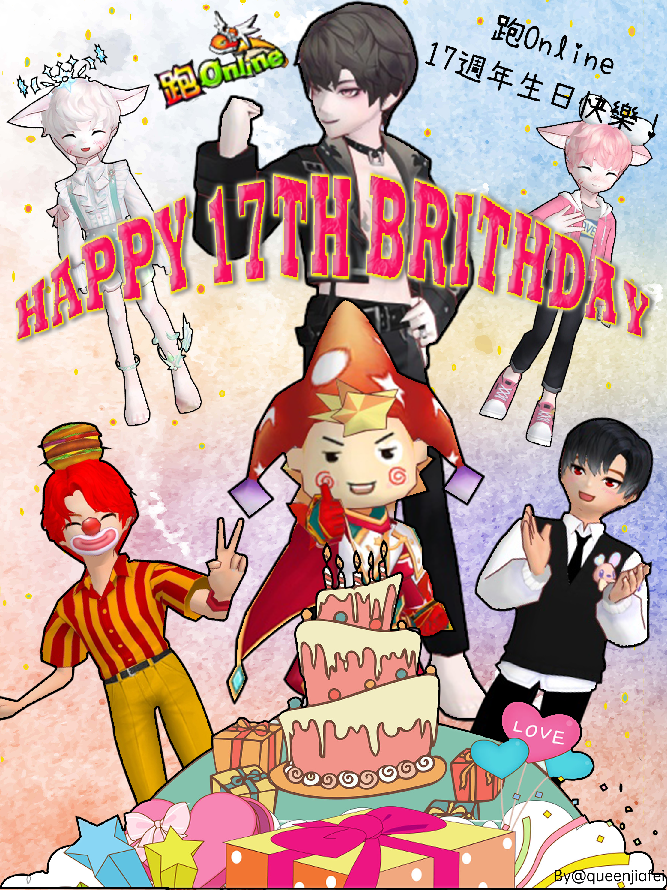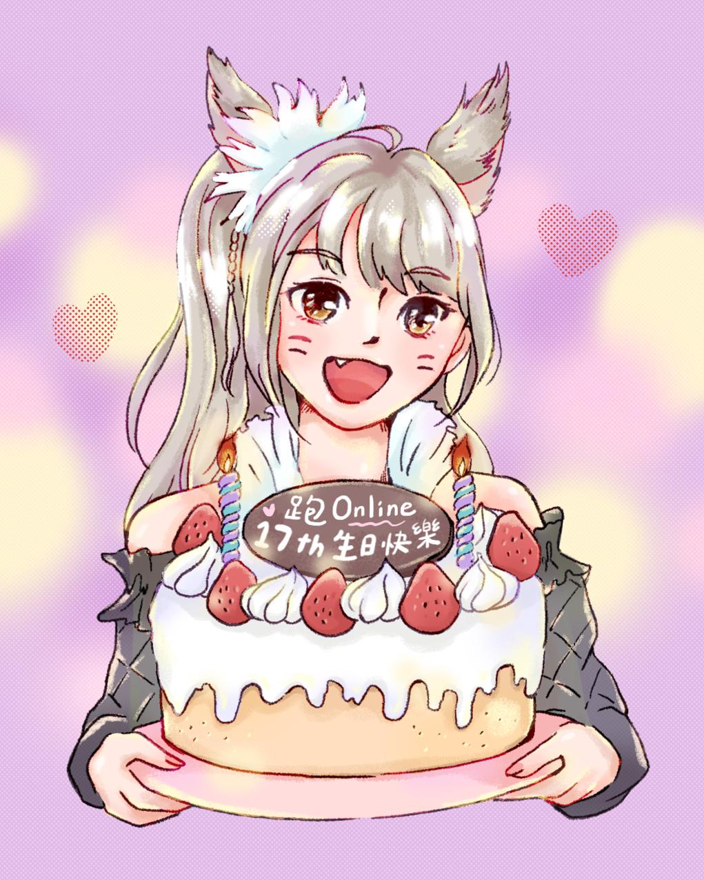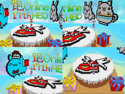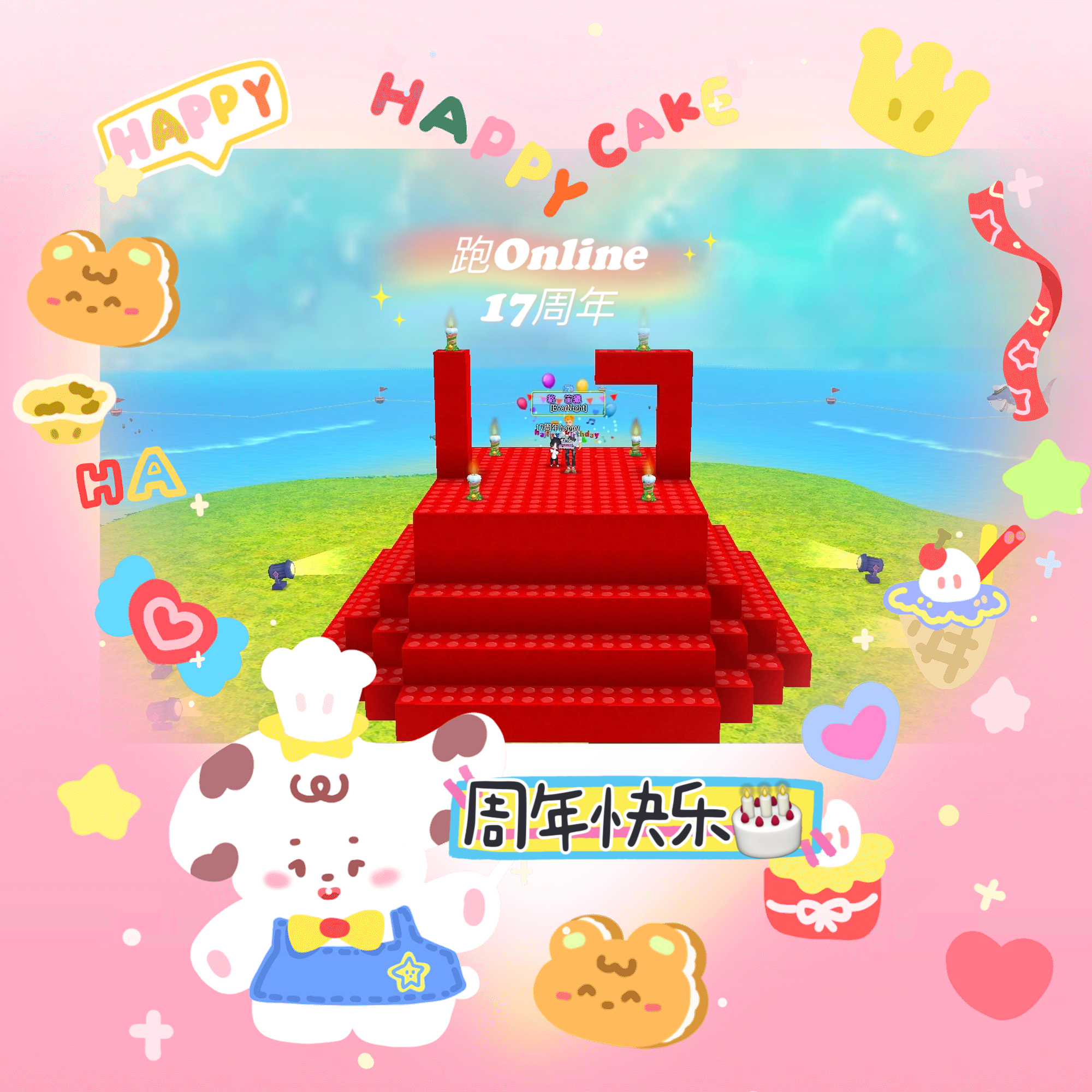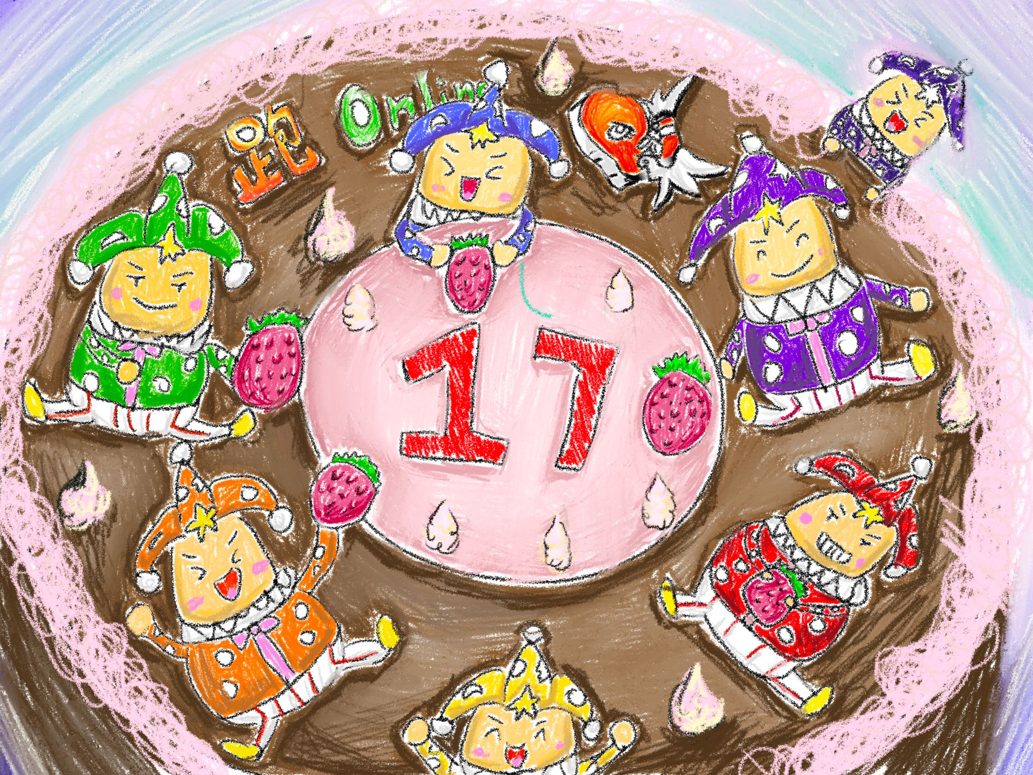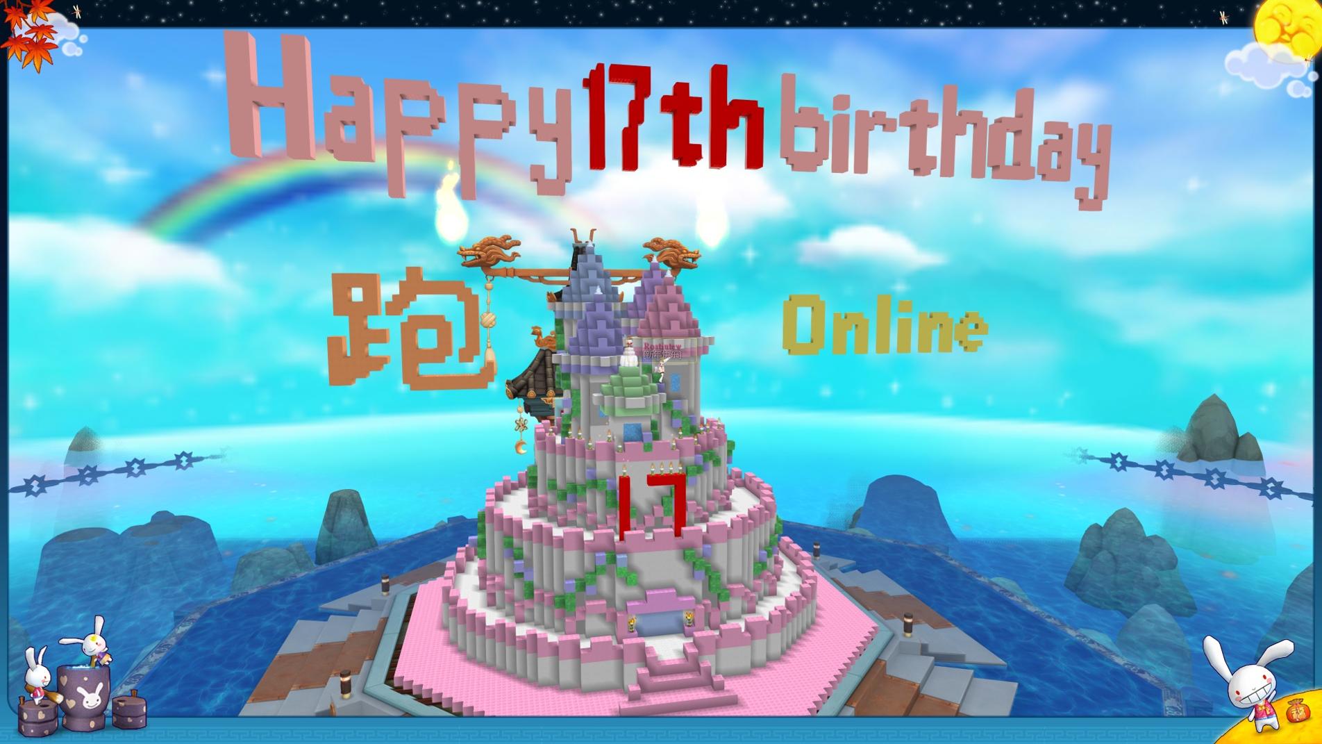 夏日將至,亦代表跑online的十七週年即將來臨 蛋糕上的繽紛色彩如同童話王國,令人回憶起在跑online中種種趣事。獎品要華麗的對決翅膀-D