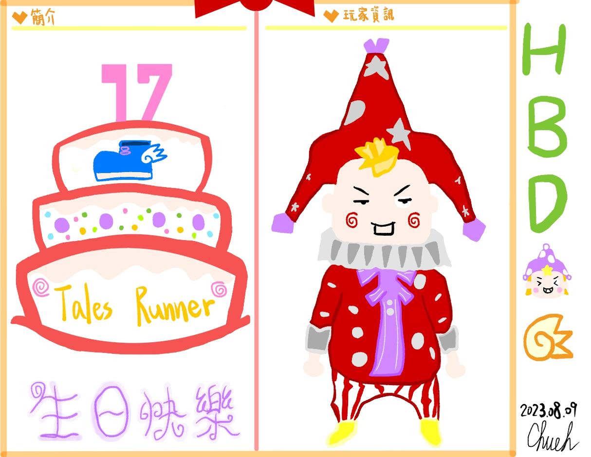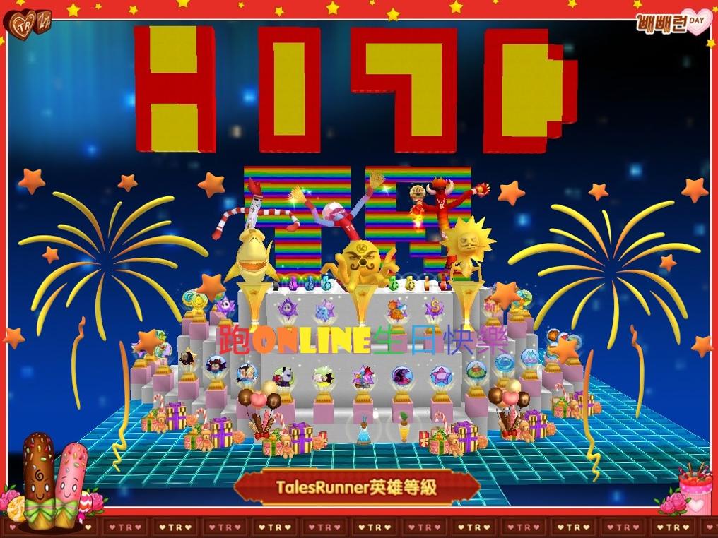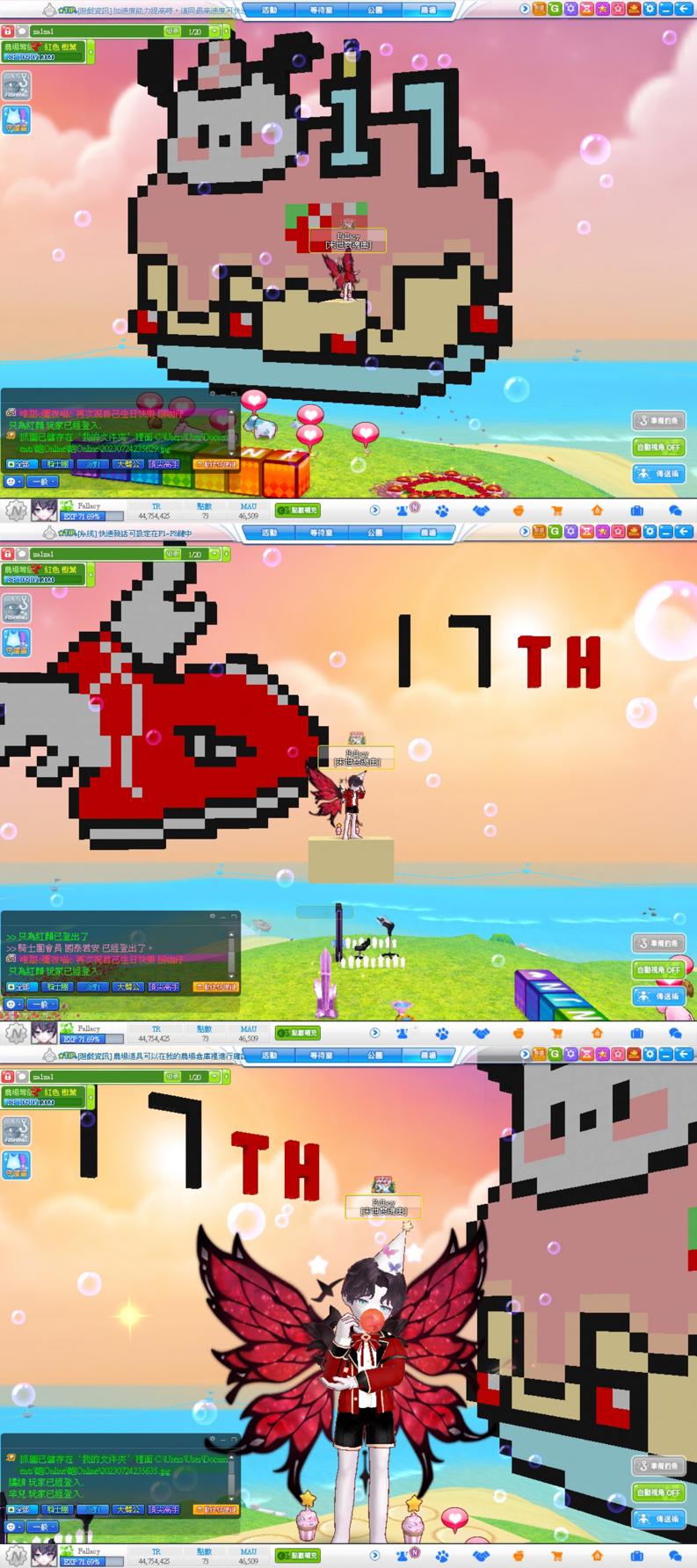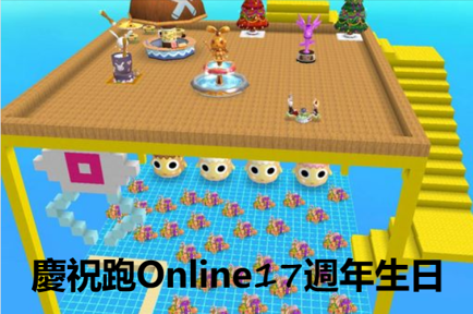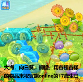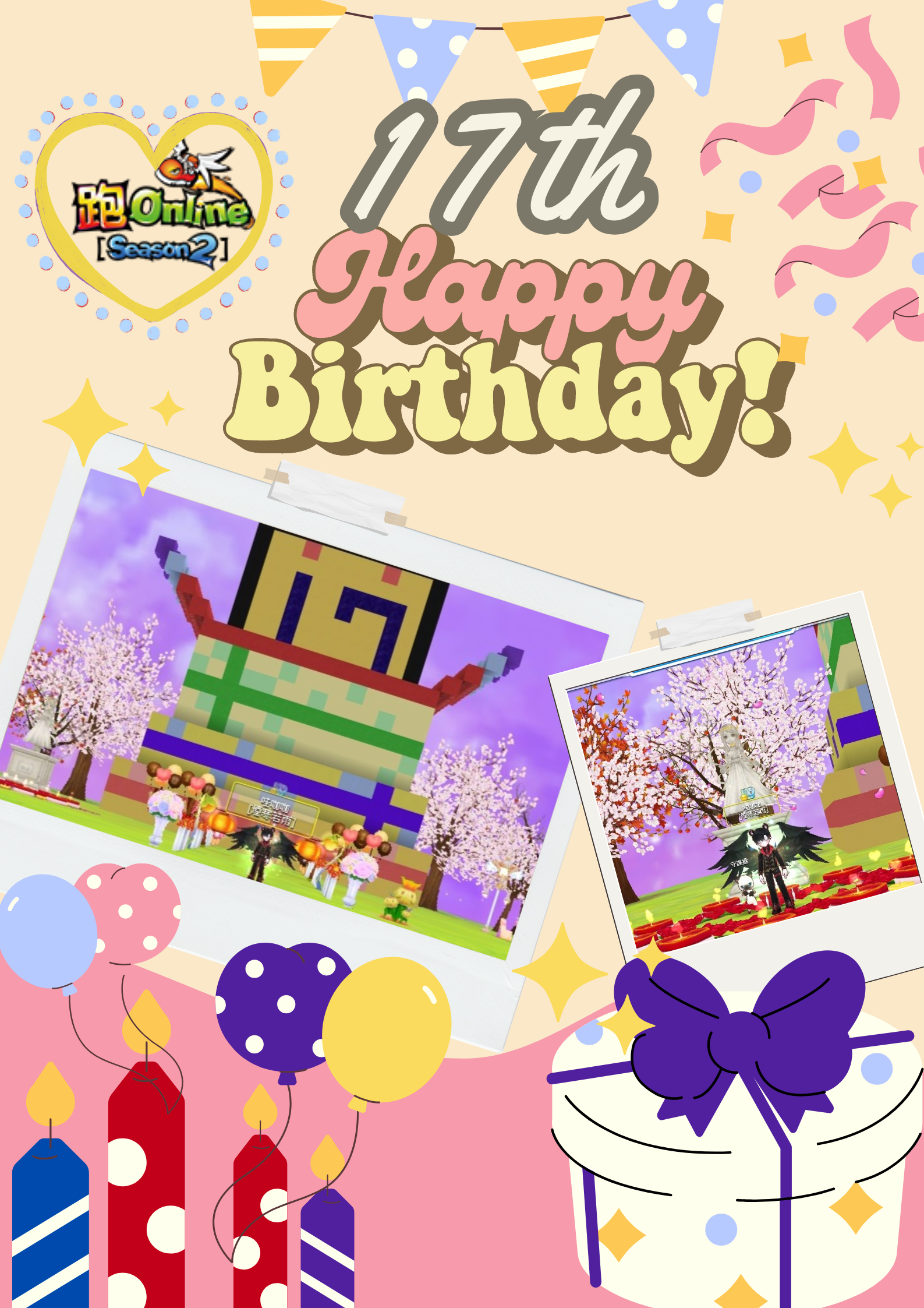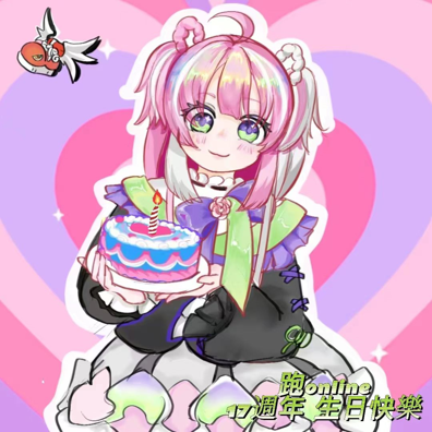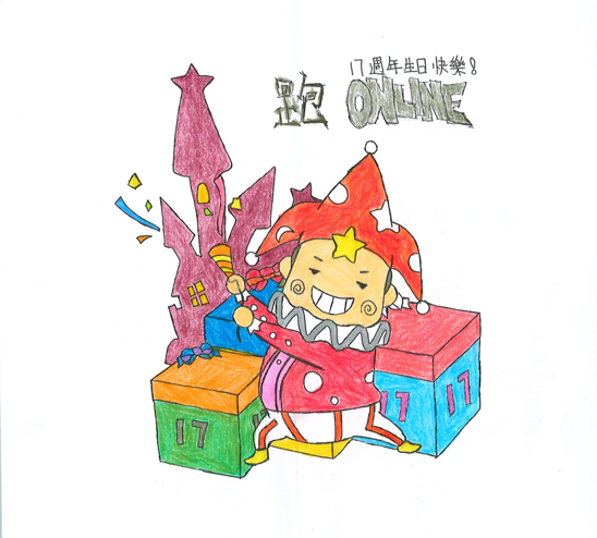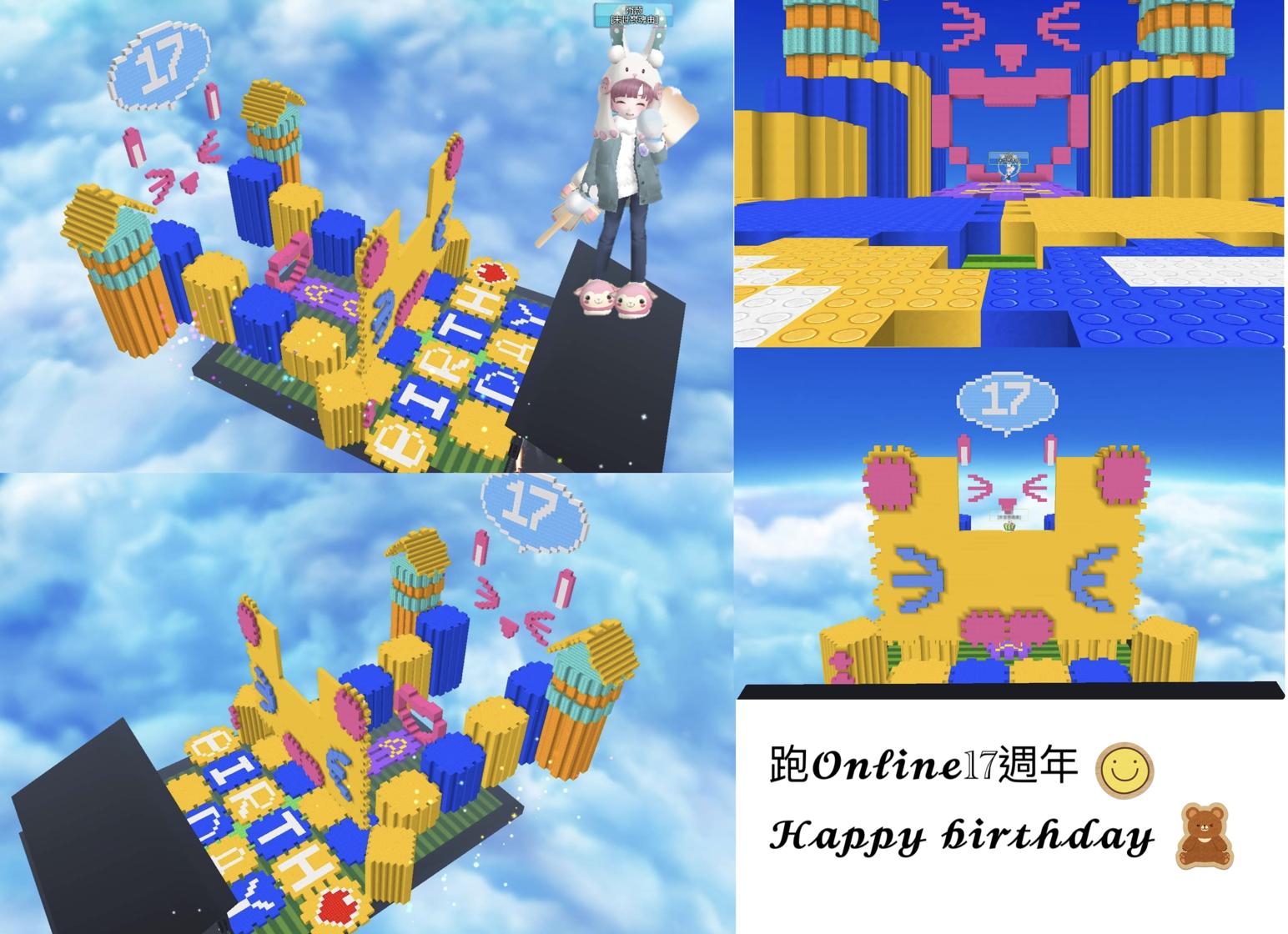 夏日將至,亦代表跑online的十七週年即將來臨 蛋糕上的繽紛色彩如同童話王國,令人回憶起在跑online中種種趣事。獎品要華麗的對決翅膀-D