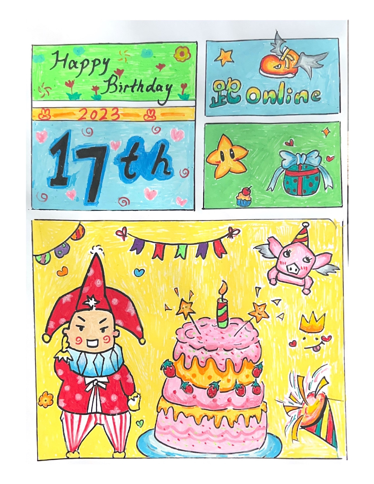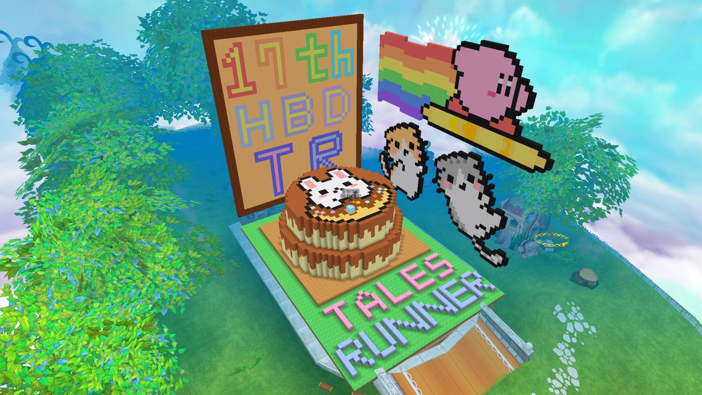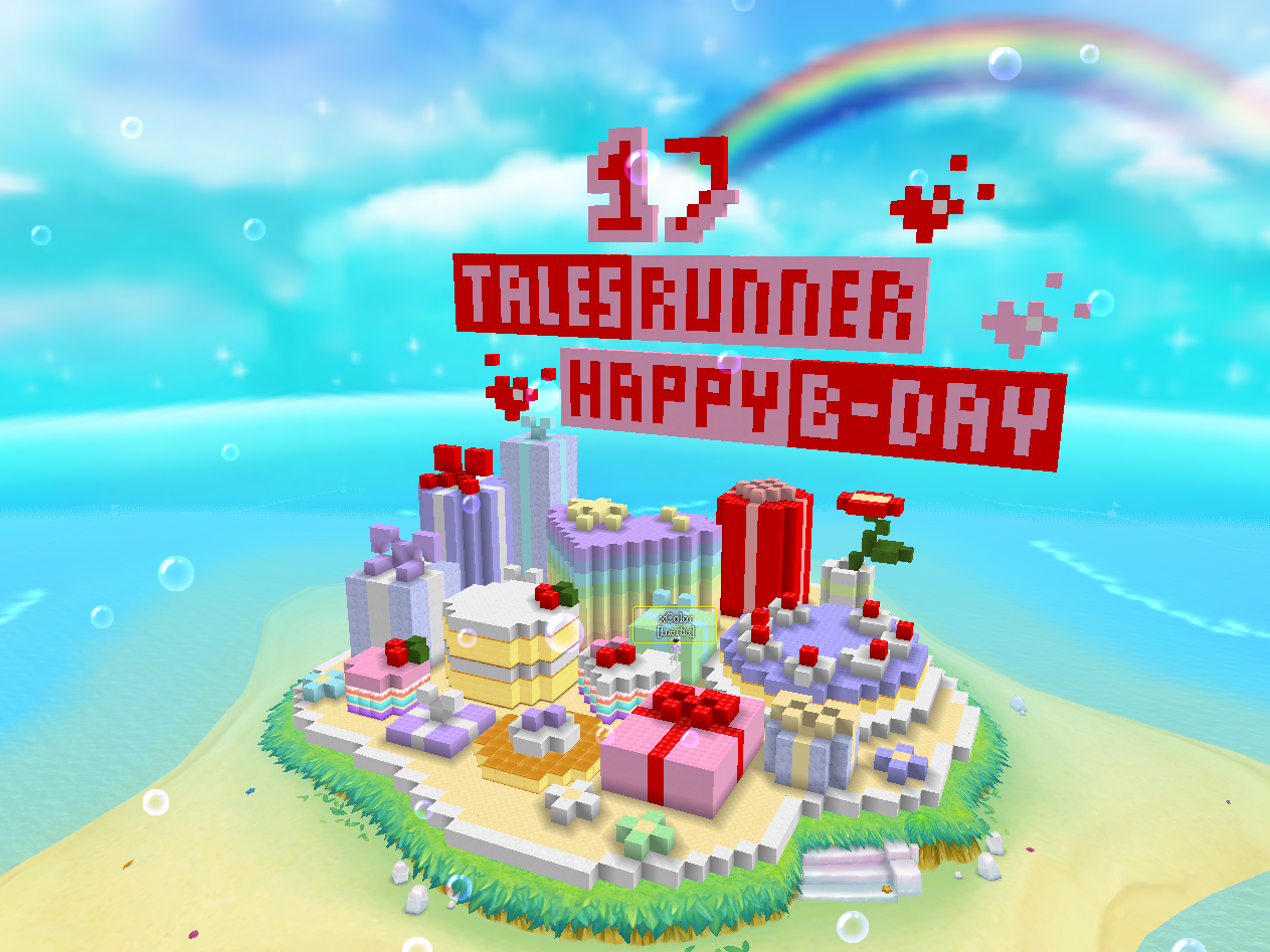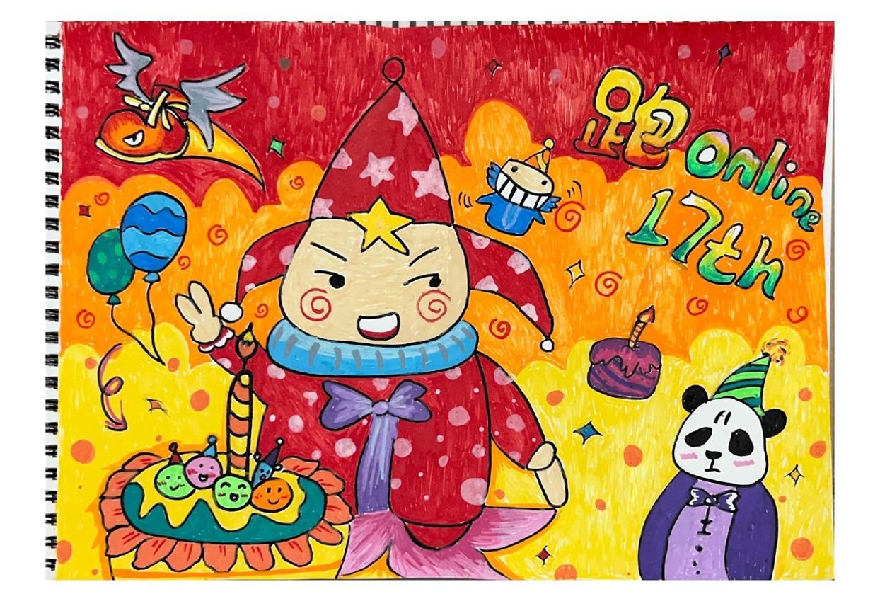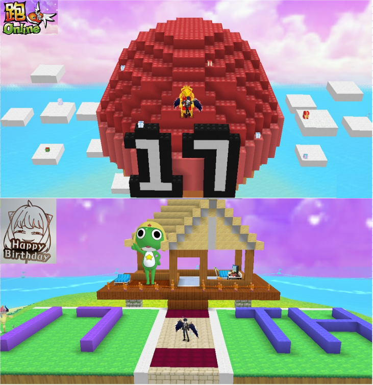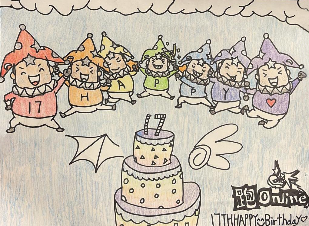 夏日將至,亦代表跑online的十七週年即將來臨 蛋糕上的繽紛色彩如同童話王國,令人回憶起在跑online中種種趣事。獎品要華麗的對決翅膀-D