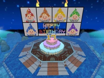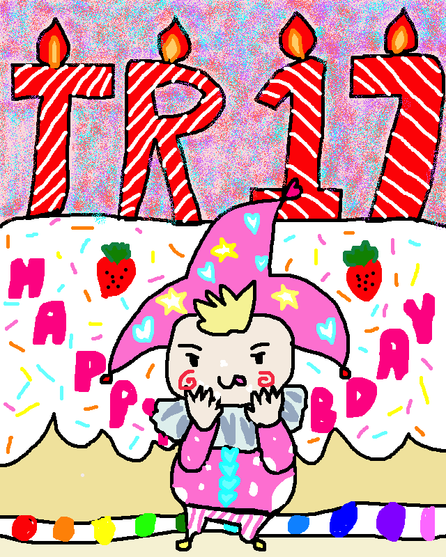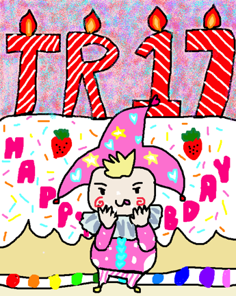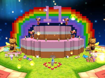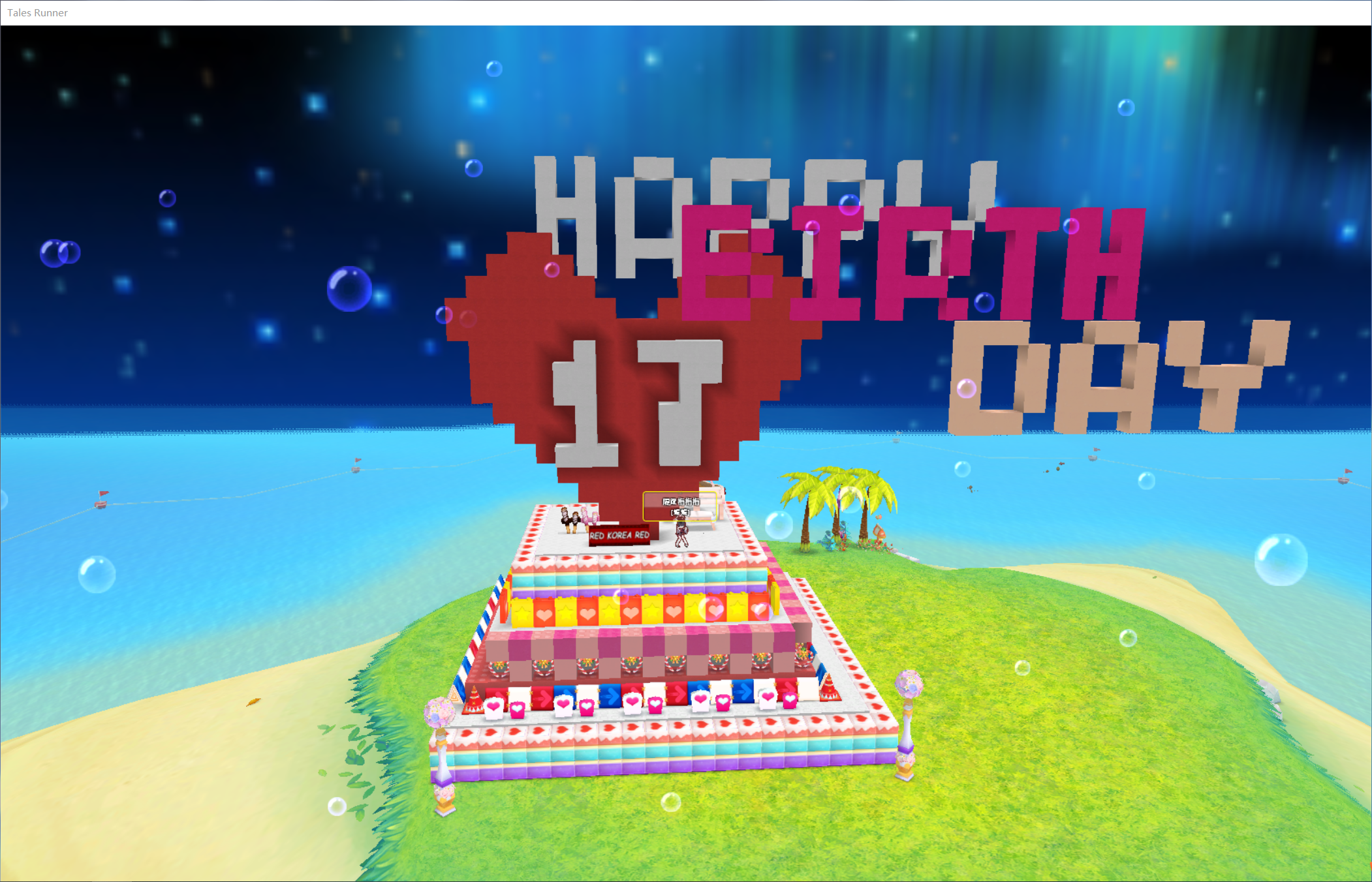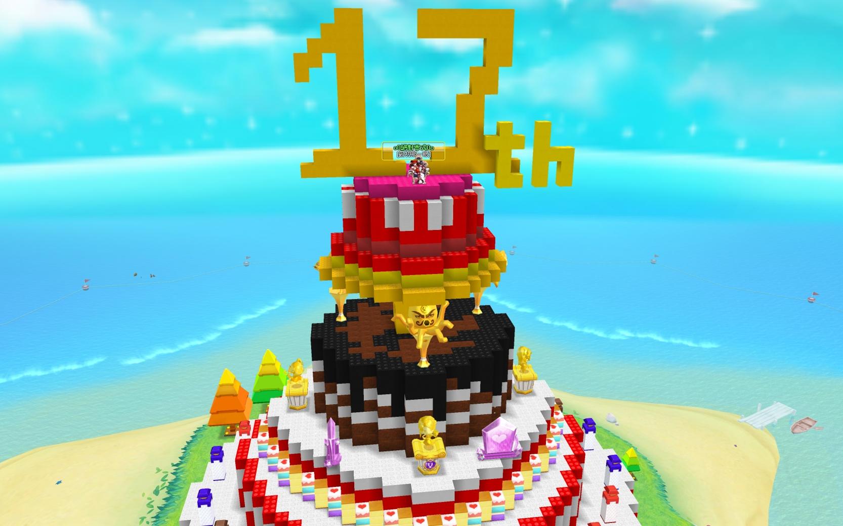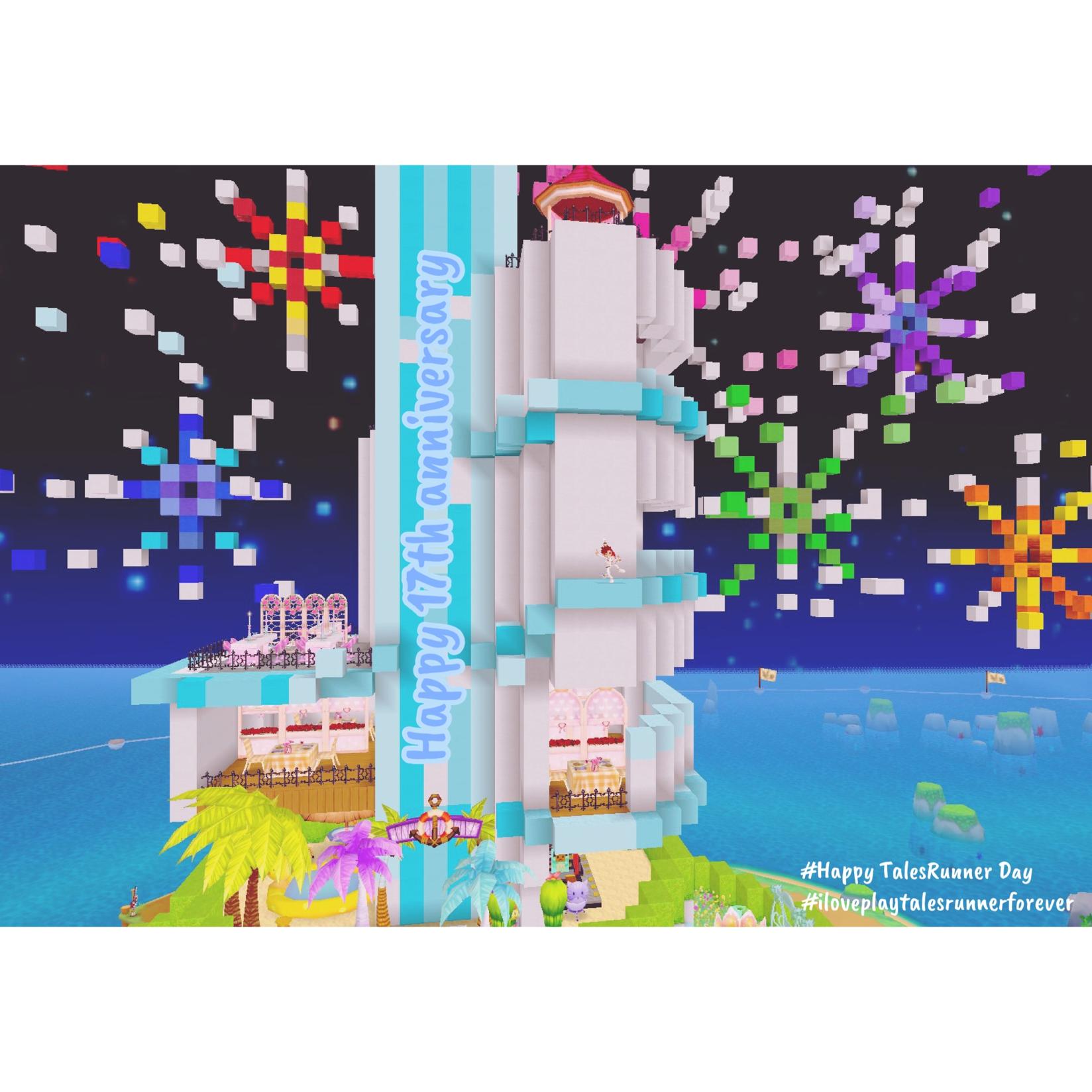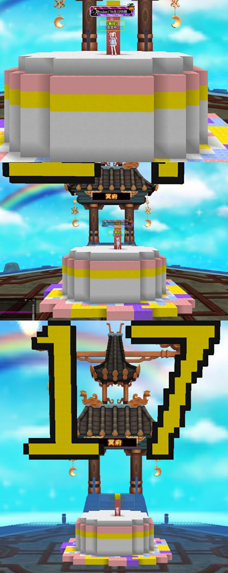夏日將至,亦代表跑online的十七週年即將來臨 蛋糕上的繽紛色彩如同童話王國,令人回憶起在跑online中種種趣事。獎品要華麗的對決翅膀-D