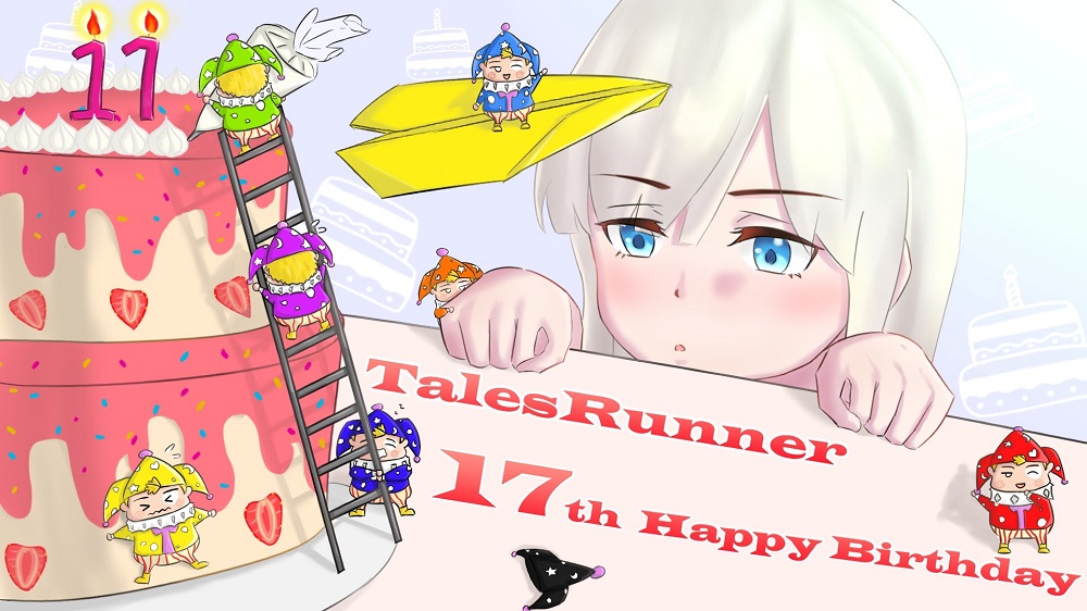維拉帶著生日蛋糕走來,一起度過跑online童話王國17歲生日~每一位童話王國的跑著都可以分享這份喜悅的蛋糕,希望大家可以天天開心,好好享受童話王國跑步的樂趣~(自選獎勵:暴食-D)