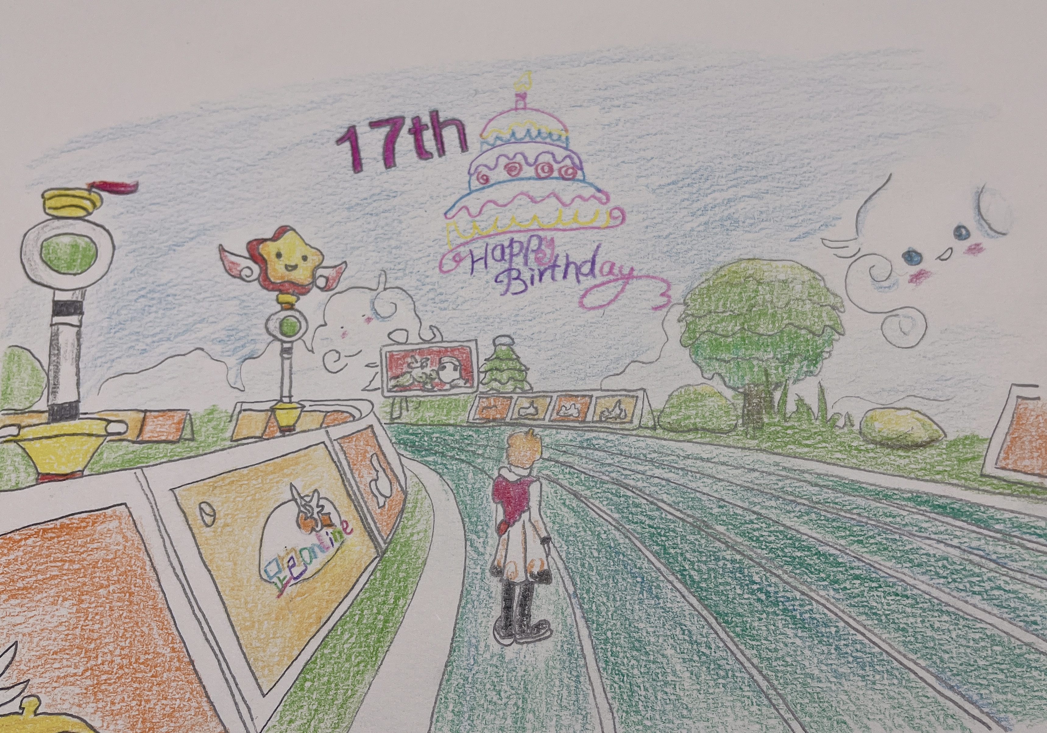 跑Online17歲生日快樂!今年作品用了舊公園作背景,希望可以保留多年來的回憶,是有紀念價值的一個位置,同時希望跑者們繼續玩得開心! 想要的道具:華麗的對決翅膀-D