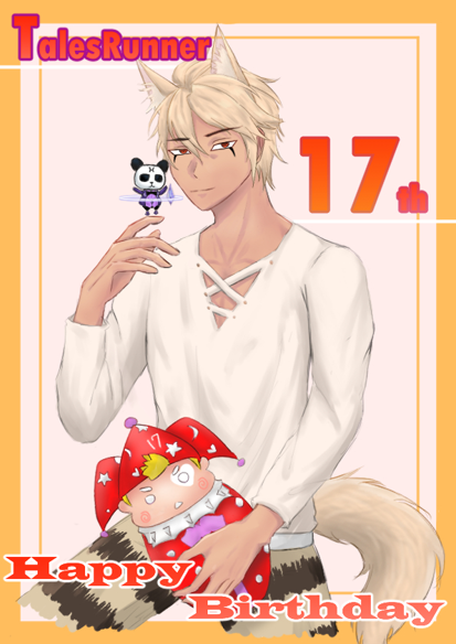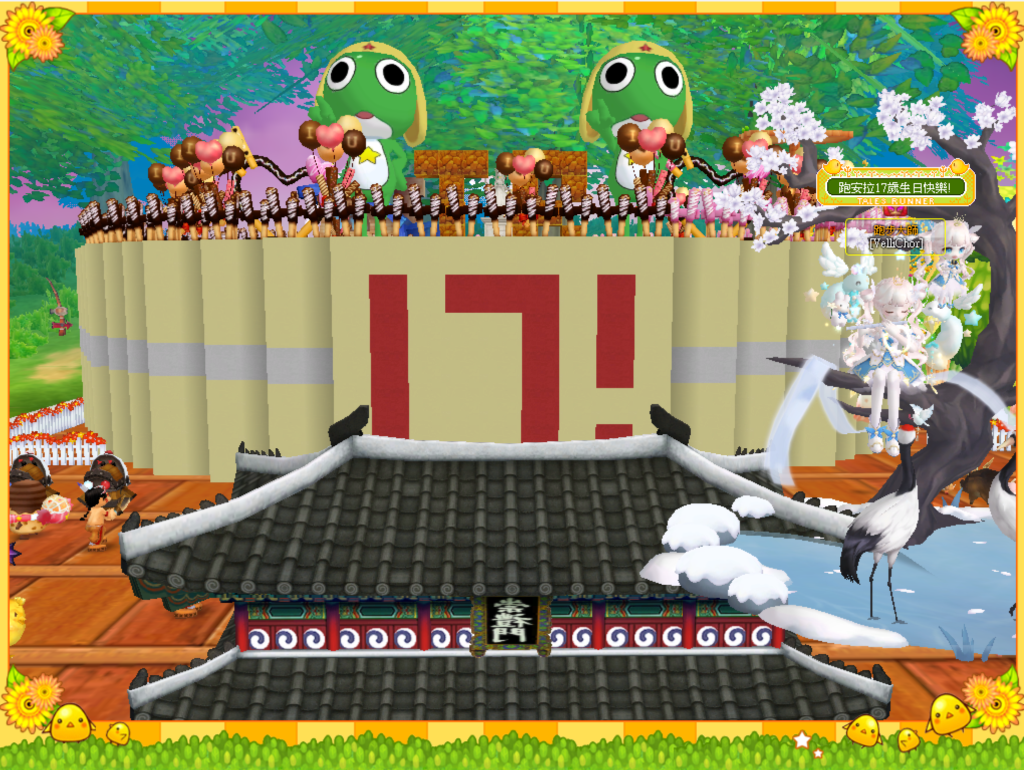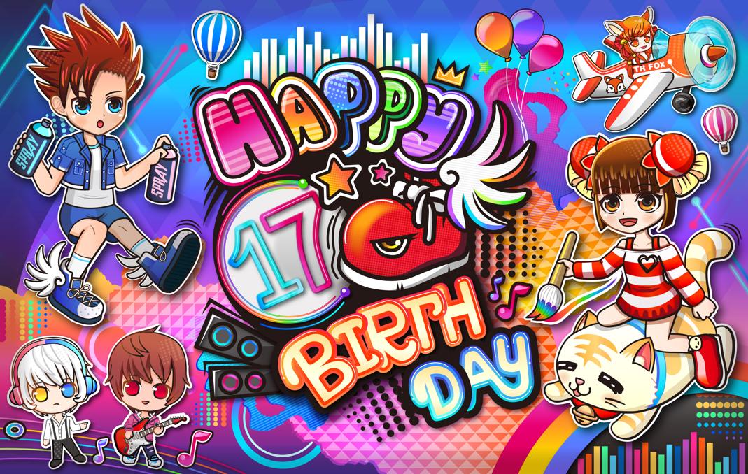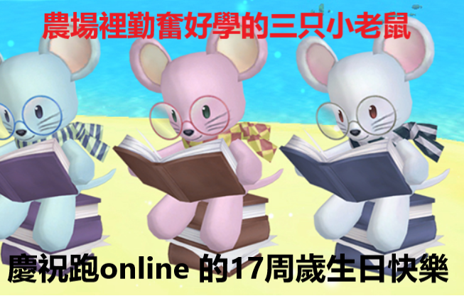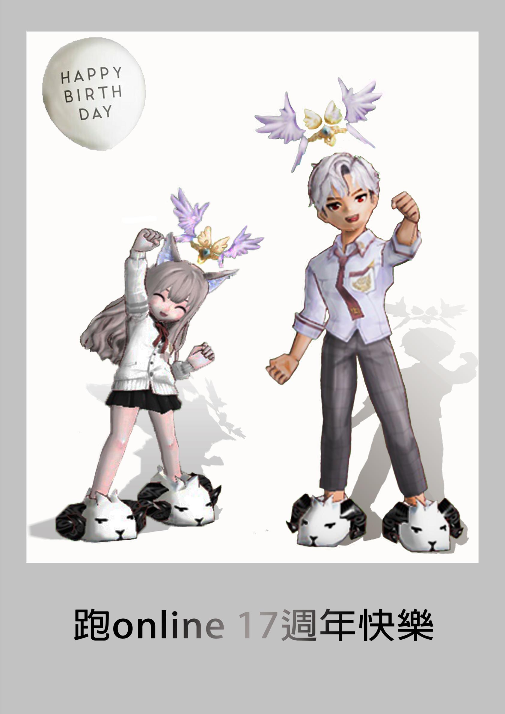 以兩隻遊戲中的動物祝賀跑online 17周年生日快樂。獎品要華麗對決翅膀