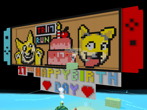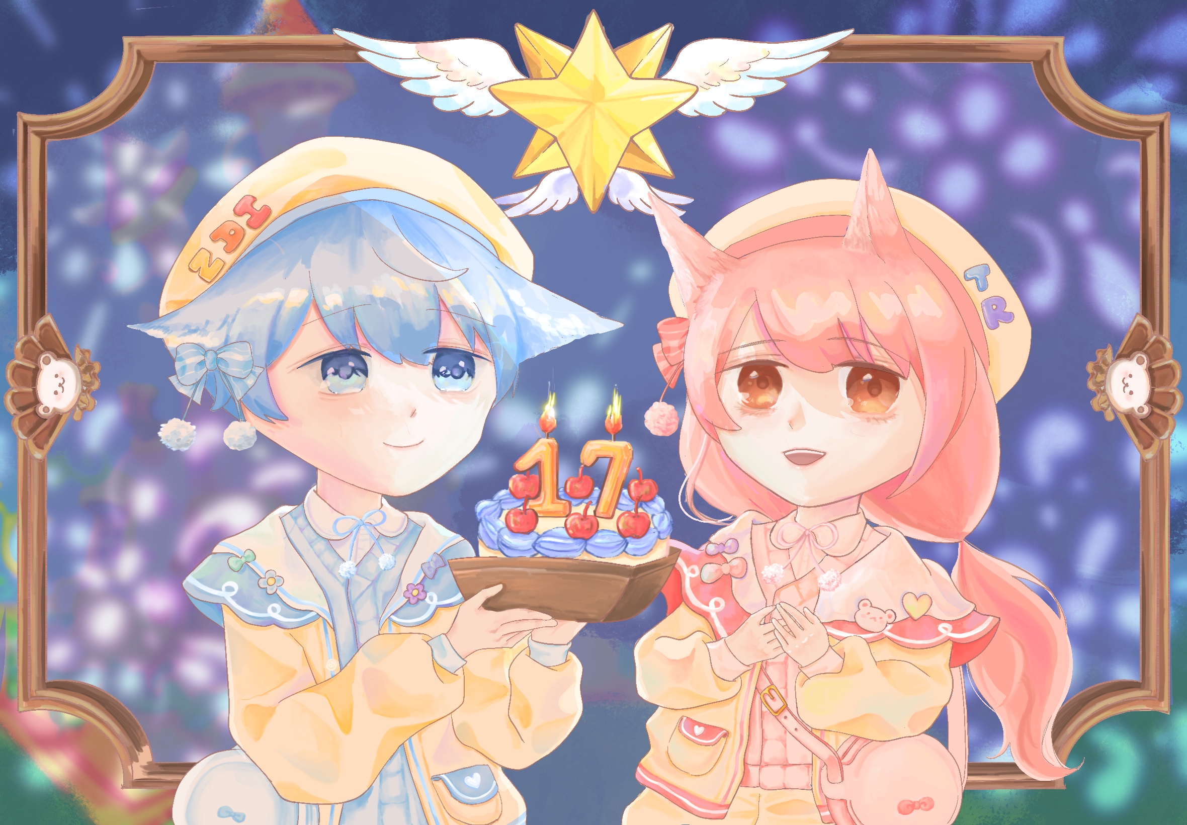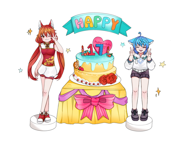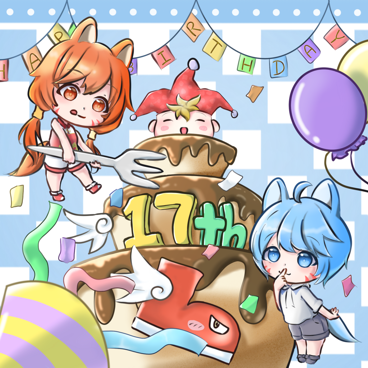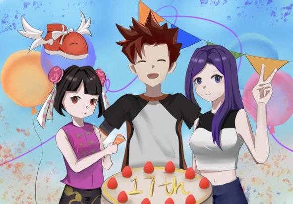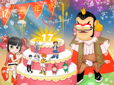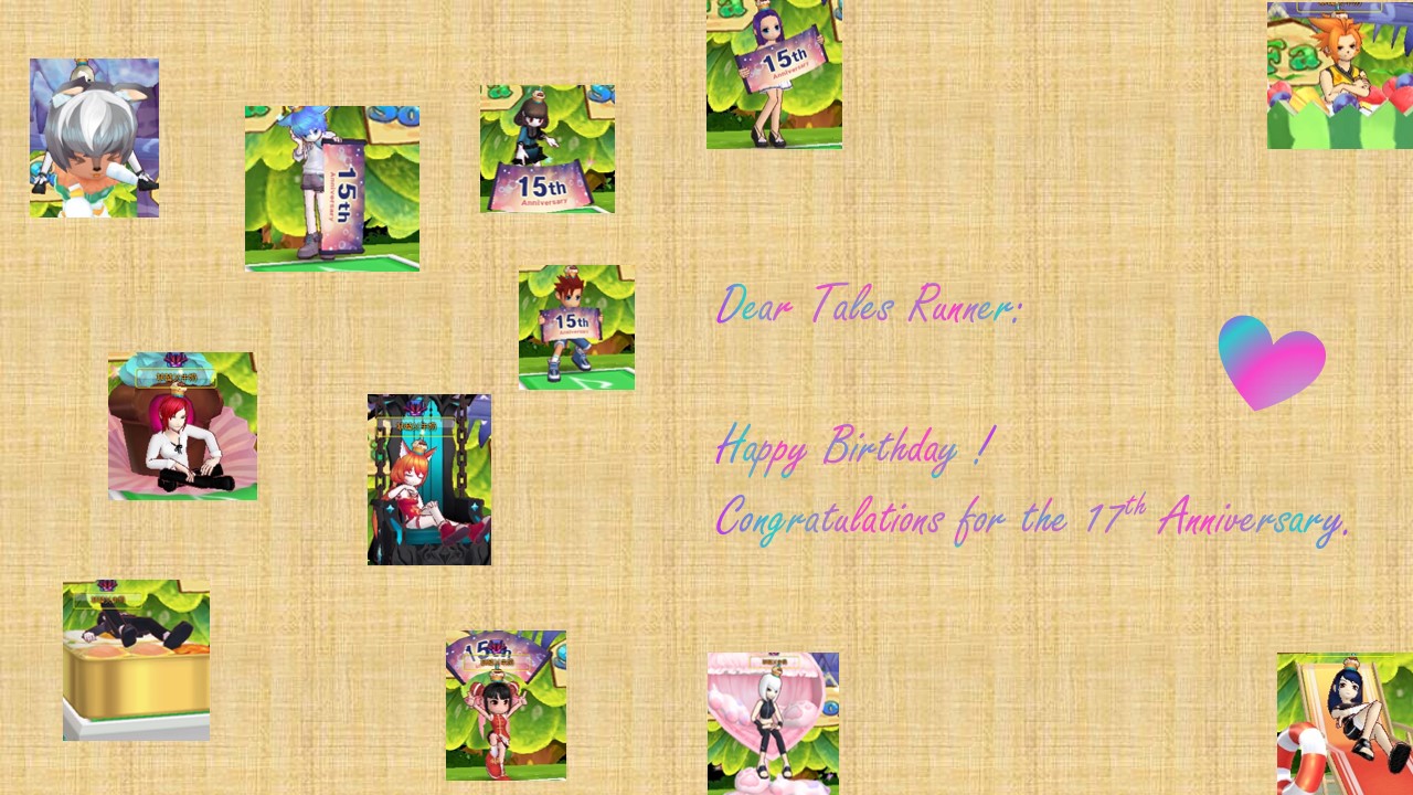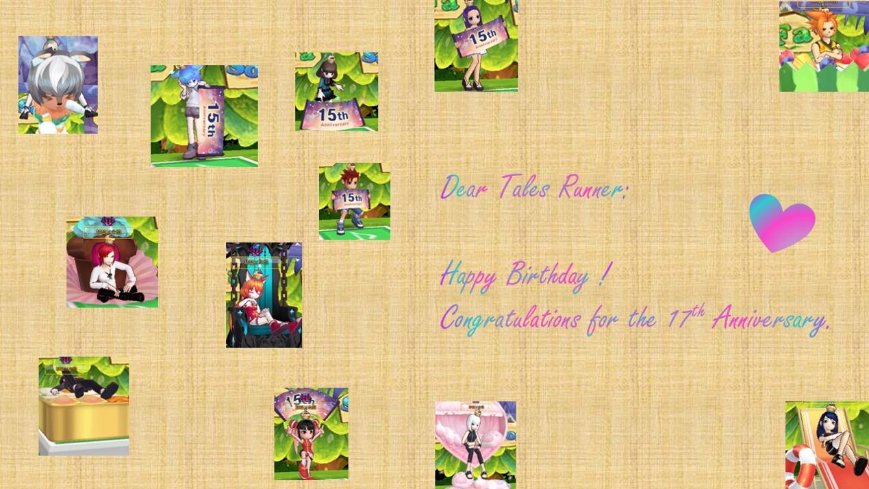 以兩隻遊戲中的動物祝賀跑online 17周年生日快樂。獎品要華麗對決翅膀