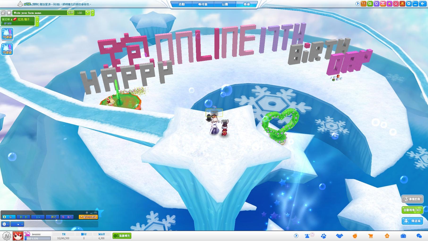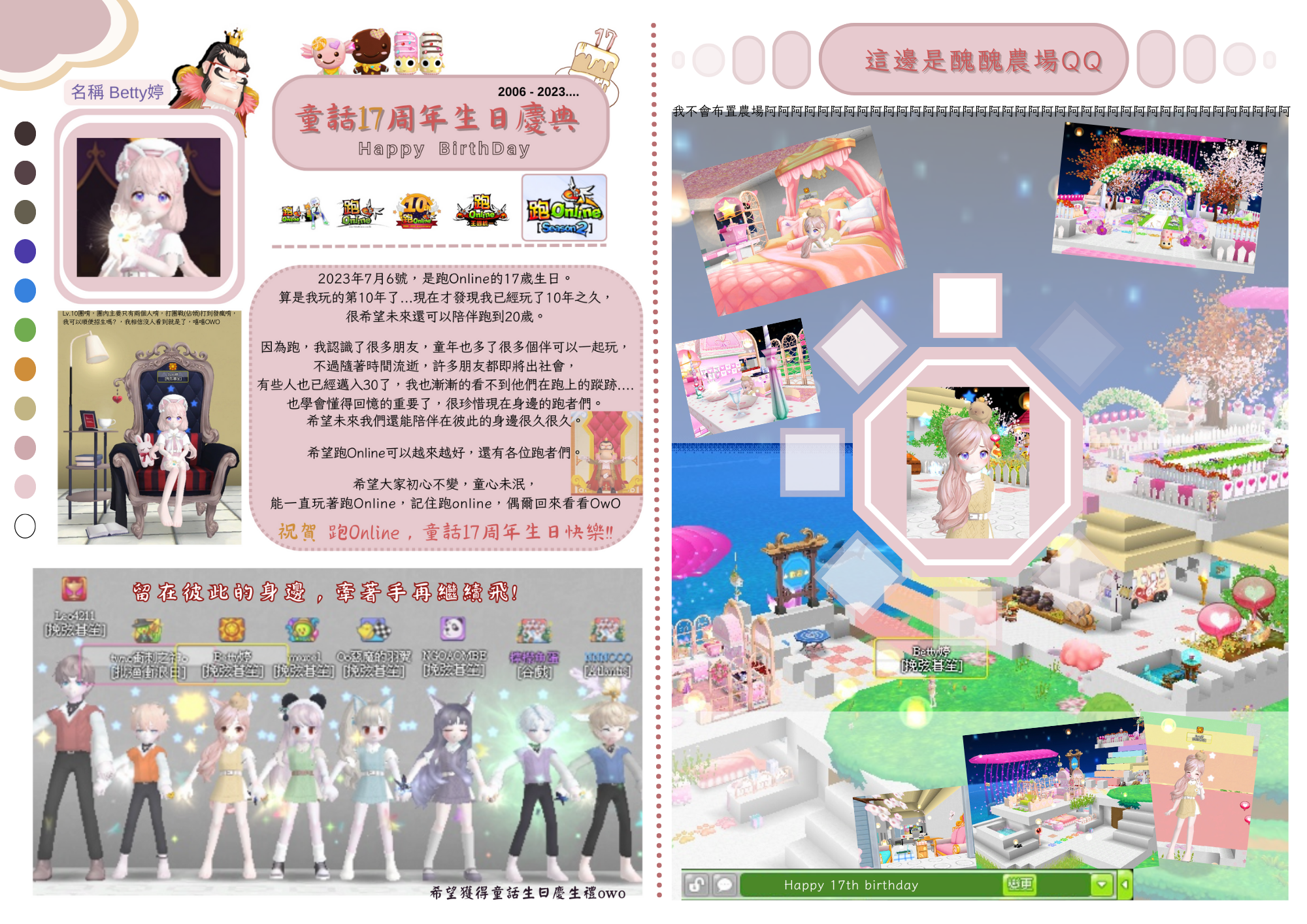 跑online17年啦! 2007年玩到2023年:D 祝好生意<3 希望獲得童話生日禮物 暴食-D 感謝!