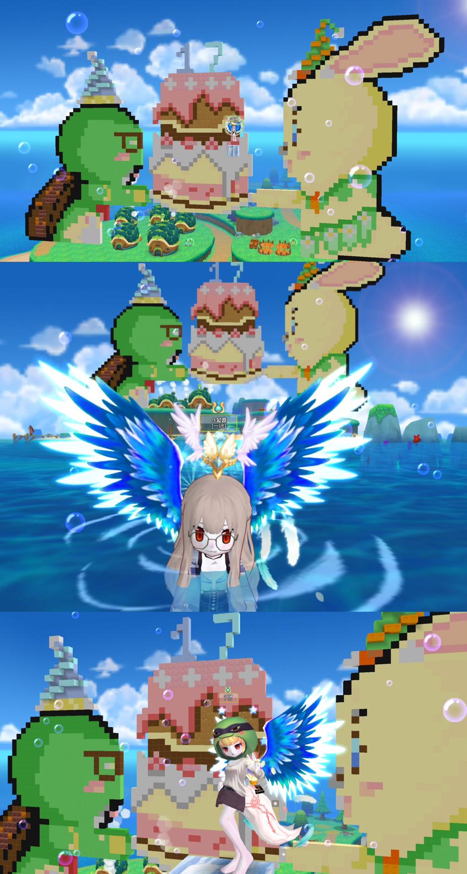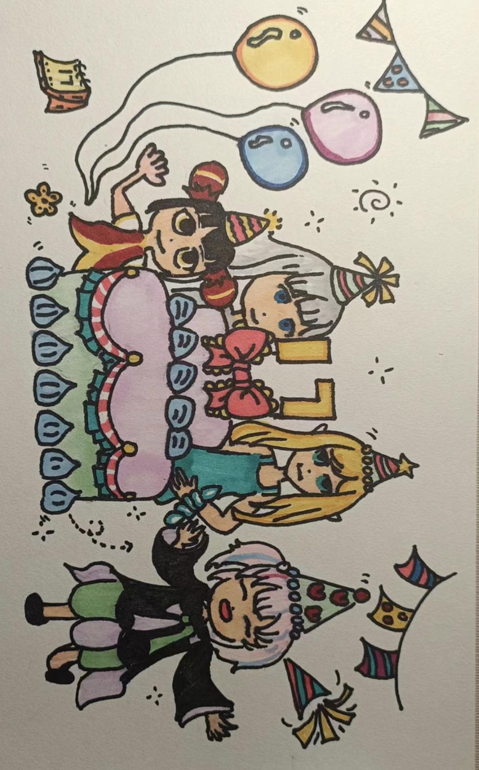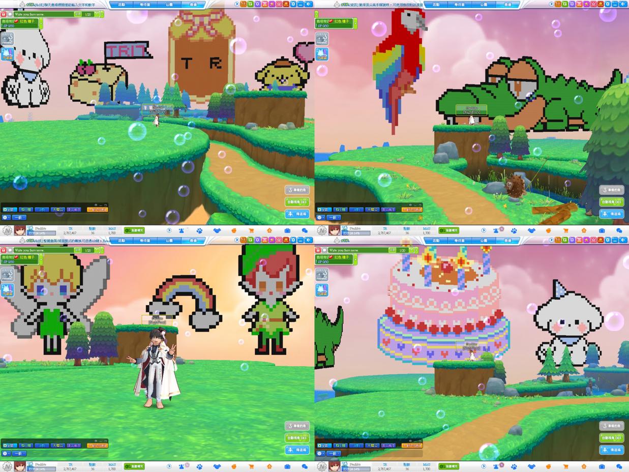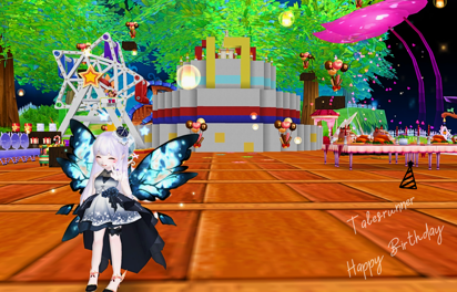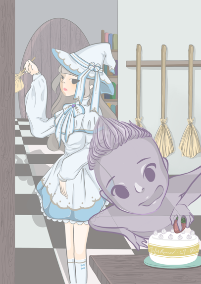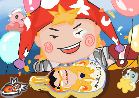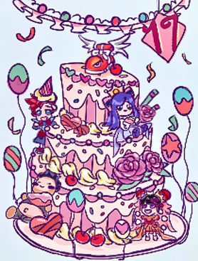 童話生日慶生禮:華麗的決戰翅膀-D淡延第一次參加童話王國慶典,感到一切事物好奇。緣迕:「淡延啊,用錘子敲一下就可以啦~」。至於夏郎嘛….可能又惹怒緣迕了。「因為次元活動使蛋糕也變身為星球蛋糕了。」-菈