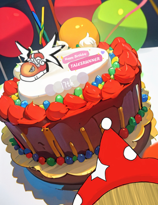 作品中有跑OnlineLogo、生日蛋糕和生日祝賀語,以慶祝跑Online17歲生日,童話生日慶生禮:暴食-D